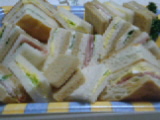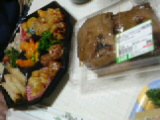 市販のサンドイッチと惣菜&ケーキ&ワインです。